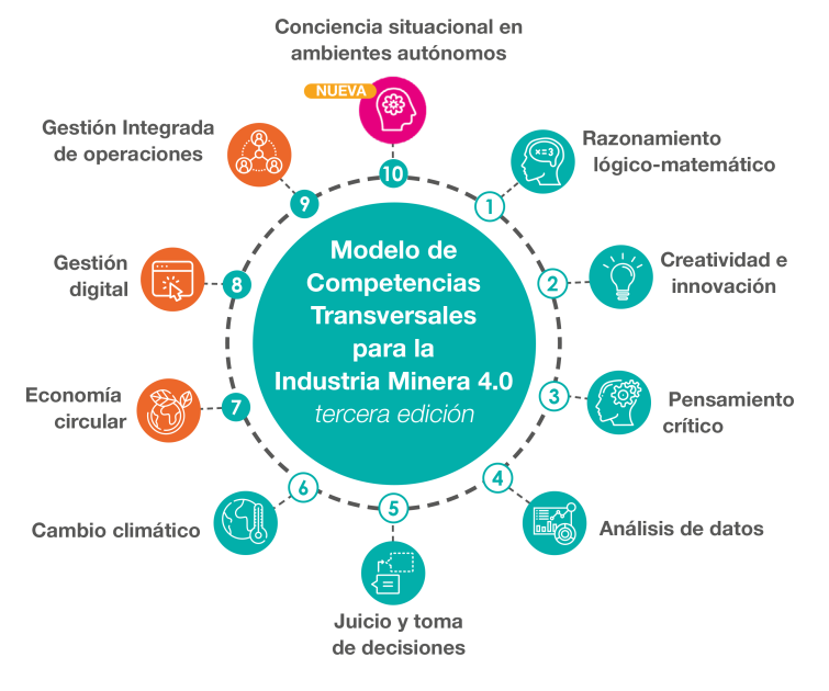 El “Modelo de Competencias Transversales para la Industria Minera 4.0” posee como objetivo favorecer la adaptación de las personas a una industria minera cada vez más tecnológica, segura y sostenible.